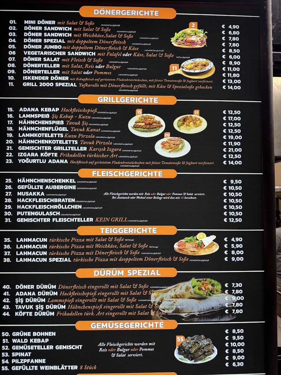 Welcome to Grill-Kebab 2000, a culinary gem located at Moritzstraße 32, Wiesbaden, Germany. Here, the art of kebab-making reaches new heights, ensuring a delightful experience for both locals and visitors alike. Our menu embraces an array of mouthwatering delights, from the juicy doner sandwich overflowing with flavor, to crispy falafels and refreshing Turkish coffee.